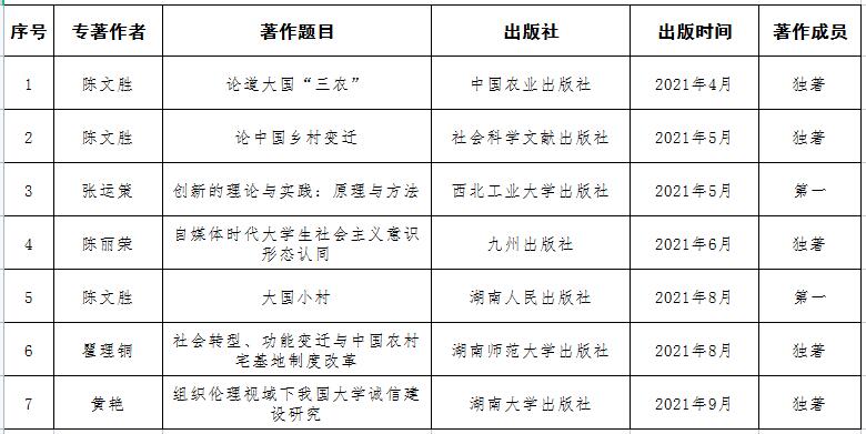 2021年永利最新登录入口教师专著一览表