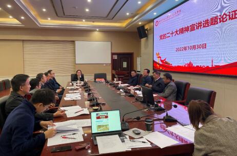 10月30日上午,永利最新登录入口组织党的二十大精神宣讲选题论证会。中共党史党建研究院名誉经理徐晨光教授、省委宣讲团成员唐未兵教授等宣讲团部分成员参加论证。公司党委书记陈红桂主持论证会。