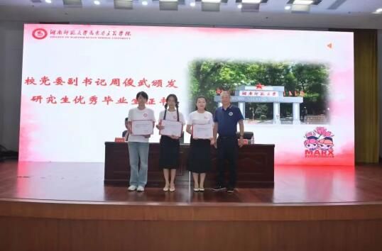 优秀本科生毕业生代表洪瑶、优秀研究生毕业生代表刘琪玮先后发言。她们回忆了自己在校求学和成长经历,表达了对母校、对老师的感激与不舍之情以及争做栋梁、报效祖国的决心。