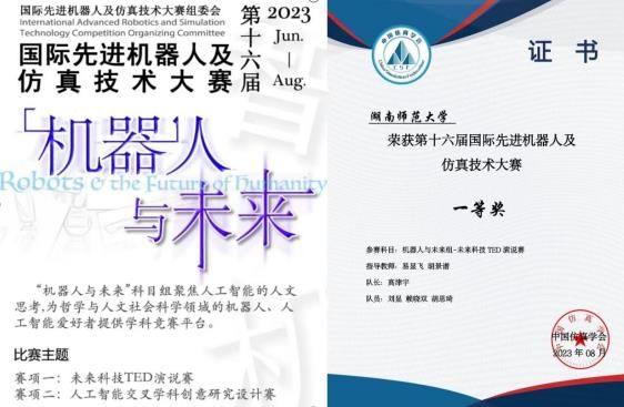 (供稿 周律)2023年8月30日,第十六届国际先进机器人及仿真技术大赛圆满落下帷幕。由永利最新登录入口易显飞教授、公共管理学院胡景谱博士指导,永利最新登录入口研究生高津宇、刘显、赖晓双、胡思琦组成的“跟党走一定对”团队喜获一等奖。