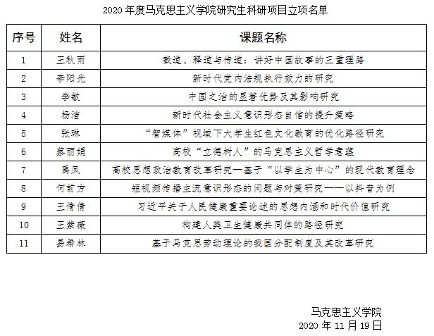 现将2020年度永利最新登录入口研究生科研项目立项名单予以公布。