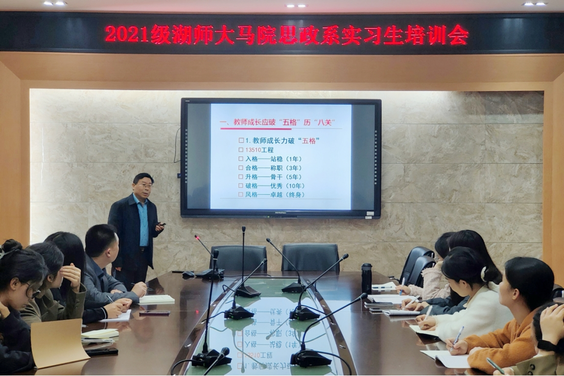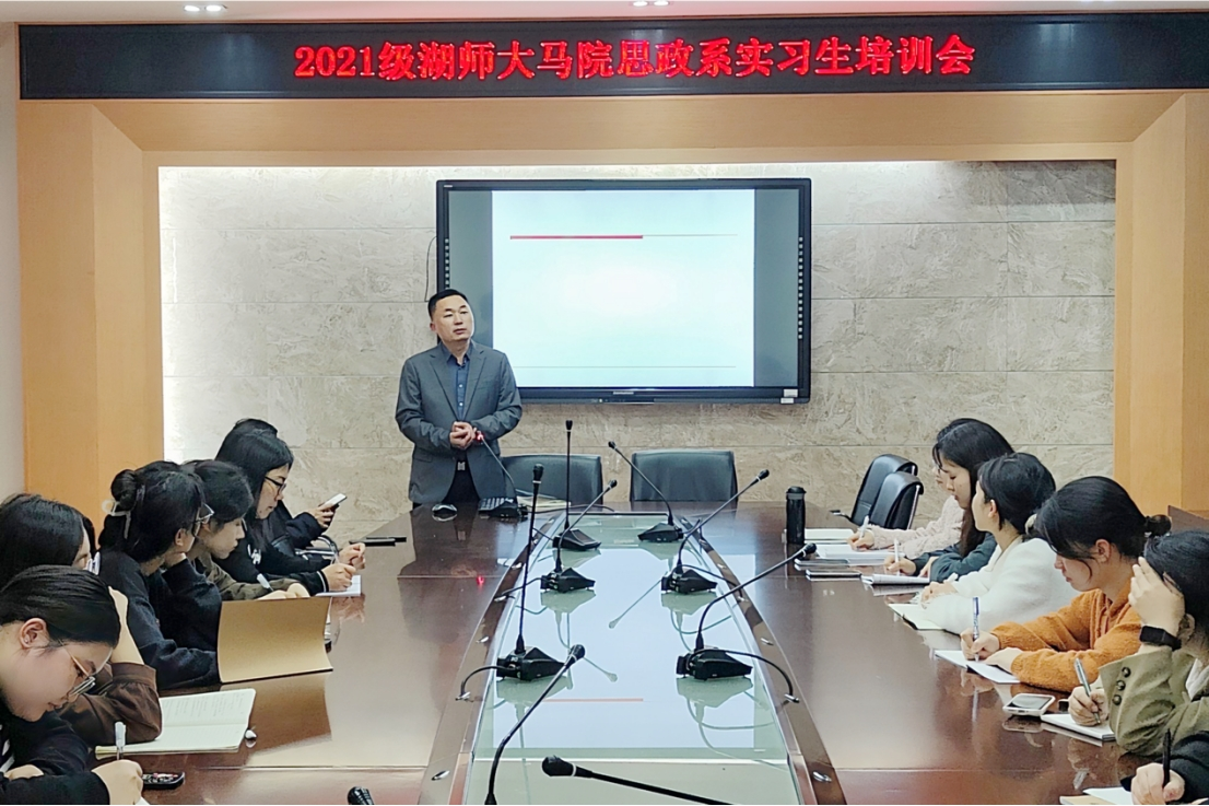 (通讯员 刘扬宇 罗思瑶)4月3日下午,永利最新登录入口思想政治教育系赴长雅中学实习队于长雅中学行政楼三楼会议室参加实习生培训会。长雅中学副董事长吴刚主持此次培训会,开福区教育科学研究中心书记、开福区中学思政教研员陈红主讲,参会人员有实习队指导老师朱飞以及24位实习队员。