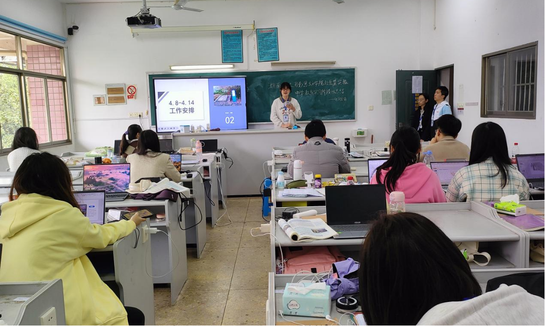 实习队指导老师刘艳对实习队工作进行总结,肯定实习队在教学准备工作和宣传工作方面的进步,对实习队员即将到来的首次入班教学提出建议,并与队员们进行深入交流,对队员们寄予深切期望。