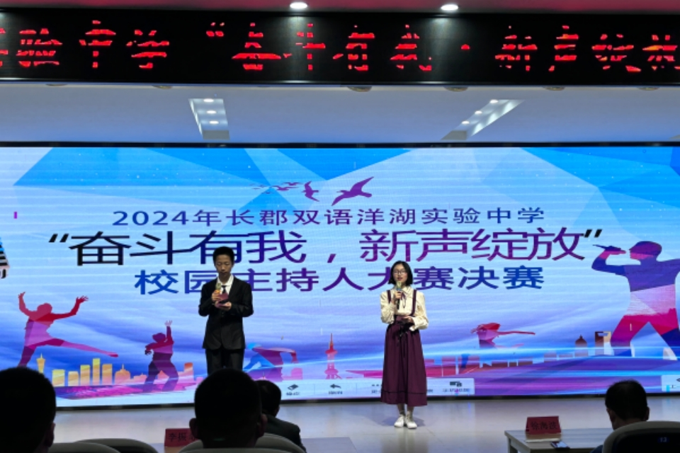 (通讯员 杨金燕 陈宇铃)4月7日下午,长郡双语洋湖实验中学举办了“奋斗有我·新声绽放”校园主持人比赛,来自初二年级的11名选手上台进行主持展示。公司永利最新登录入口思政系24名实习队员协助学校组织开展了此次比赛。