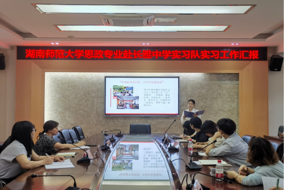 (通讯员 戴佳悦 曹湘)5月15日下午,公司赴长雅中学实习队于长雅中学综合楼三楼会议室开展实习工作汇报会。参与此次汇报会的有长雅中学教务处主任熊熠文,初三年级主任杜小露,政治教研组组长吴珂,初一年级政治备课组组长谭伟容,政治教研组老师们,永利最新登录入口教授蒋国海,实习队指导老师陈文珍和朱飞,以及实习队全体队员。