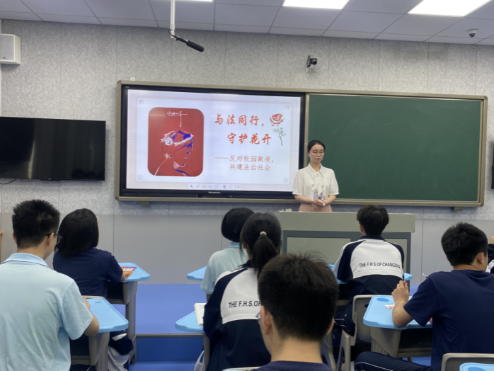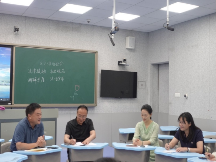 此次公开课展示活动由实习队副队长陈宝菁主持。实习队员罗国平以“探究文旅经济火热背后的政府作为”为总议题,通过“长沙为何成为‘网红’?”“从‘网红’到‘长红’政府何为?”两个问题依次推进,讲授《法治政府》相关内容;实习队员邓诗萌以反对校园欺凌为主线,从“以法为盾,护‘未’美好明天”“与法同行,汇聚法治力量”“守护花开,共建法治社会”三个层次带领员工学习建设法治社会的内涵、措施和意义。