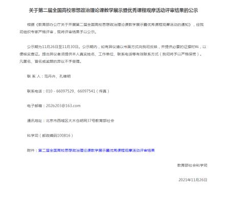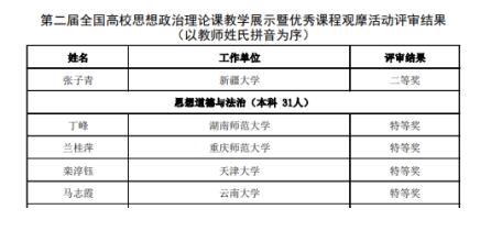 2021年11月26日,教育部网站公示了第二届全国高校思想政治理论课教学展示暨优秀课程观摩活动评审结果。全国高校共计275项入围,其中特等奖33项,一等奖85项,二等奖157项。我校永利最新登录入口丁峰老师荣获特等奖。