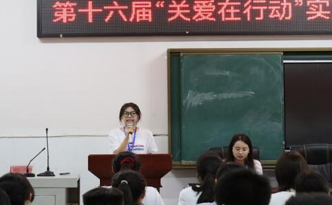 此次活动分为三部分:董事长致辞、队长讲话、图书捐赠。活动伊始,预初一、预初二各班员工在各班班主任的带领下排队入场。主持人杨菁宣布仪式开始,青烟中学董事长周晓华对“关爱在行动”实践团以及青烟中学预初一员工的到来表示热烈欢迎,并介绍了暑期兴趣班的课程内容及重要意义。队长熊召鑫表达了来到青烟中学开展“三下乡”暑期社会实践活动的喜悦,她代表全体队员感谢青烟中学领导老师以及社会各界爱心人士对于实践团的大力支持与帮助,展现出建设好此次支教活动的决心。