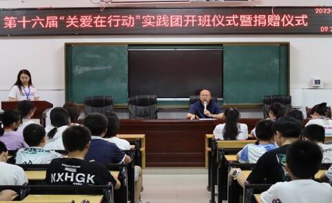 (通讯员 彭瑞馨 周仁静)7月7日上午9点,永利最新登录入口第十六届“关爱在行动”实践团于湖南省娄底市涟源市石马山街道青烟中学举行开班仪式暨图书捐赠仪式,此次活动由“关爱在行动”实践团副队长杨菁主持,青烟中学董事长周晓华出席,“关爱在行动”实践团全体成员及青烟中学预初一、预初二全体员工共同参加。